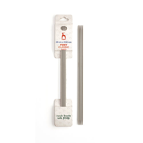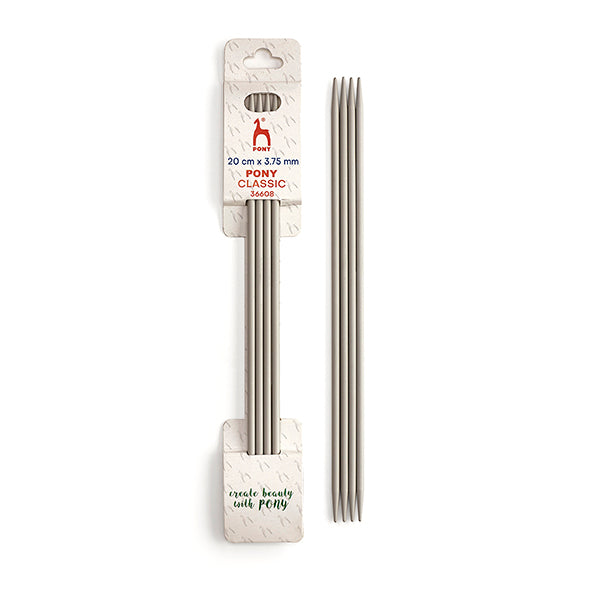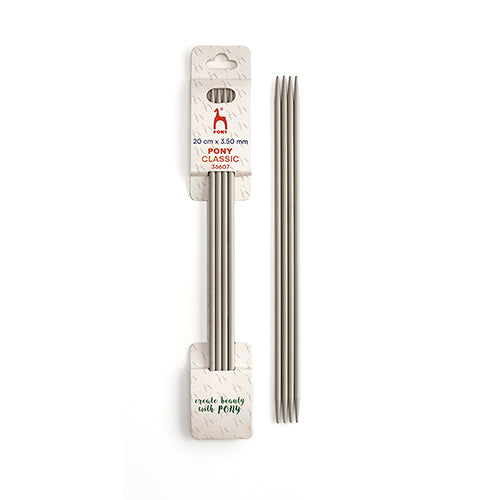 Double-ended needles are pointed at both ends which allows them to be used from either end. These have been most commonly used to knit smaller tube-shaped pieces such as hats, sleeves, collars, gloves, and socks. These sturdy yet lightweight needles are supplied in sets of four and are manufactured from solid aluminium and anodised to increase hardness and resist corrosion.
