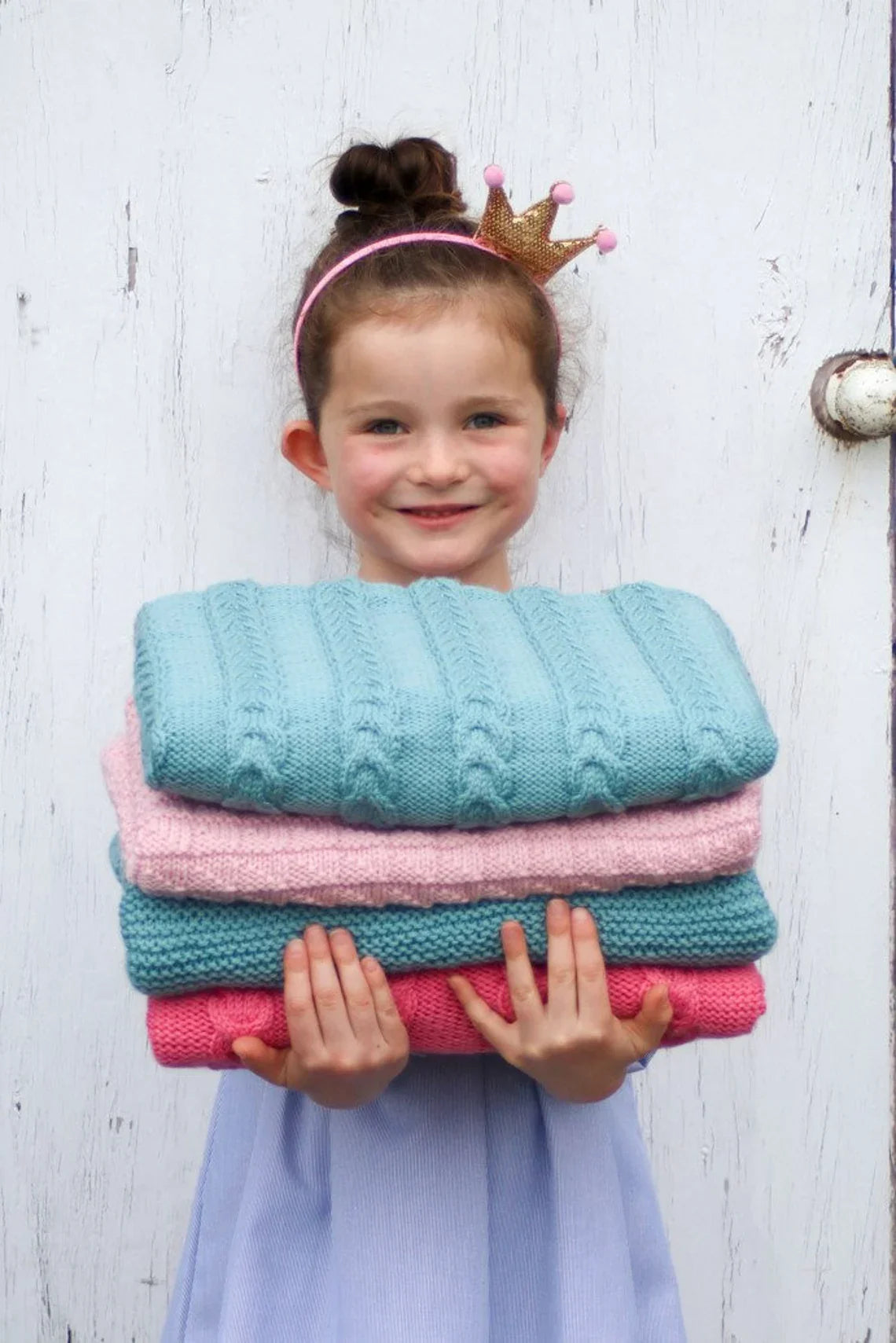 Sizes: Patterned baby blanket - 65cm x 80cm | Cable nursery blanket - 67cm x 85cm | Garter stitch blanket - 51cm x 84cm