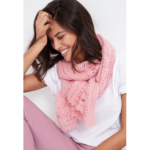 This knitting pattern is written for the Lana Grossa Setasuri yarn, a lace weight silk/alpaca yarn (which we do not currently stock) but as it is knitted on 3.5 & 4.5mm needles, any 4ply or 8 ply/DK weight yarn can be used depending on your desired finished fabric - just be sure to check your meterage as you may find you need double or triple the amount recommended below.