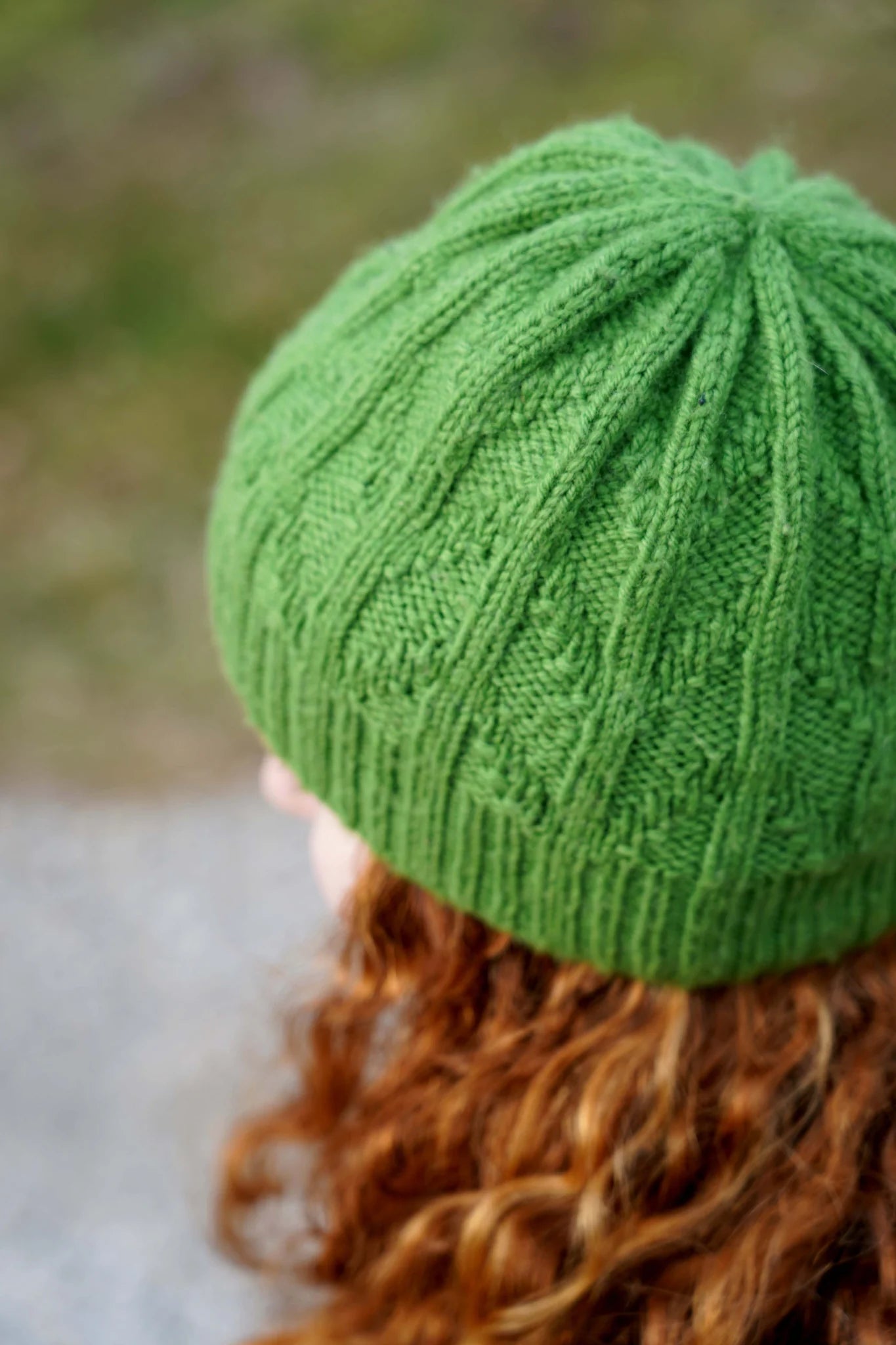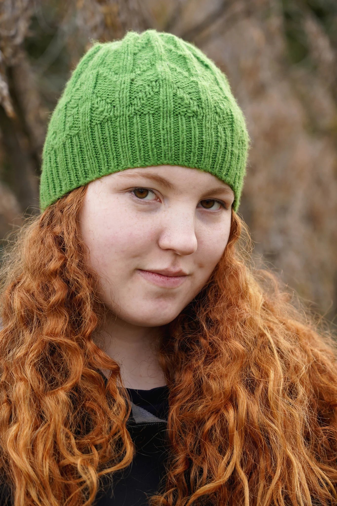 Experience a modern touch of style in your winter weekend wear with The Green Hat. Its geometric pattern, created using a combination of knit and purl stitches makes for a straightforward and enjoyable knitting experience.