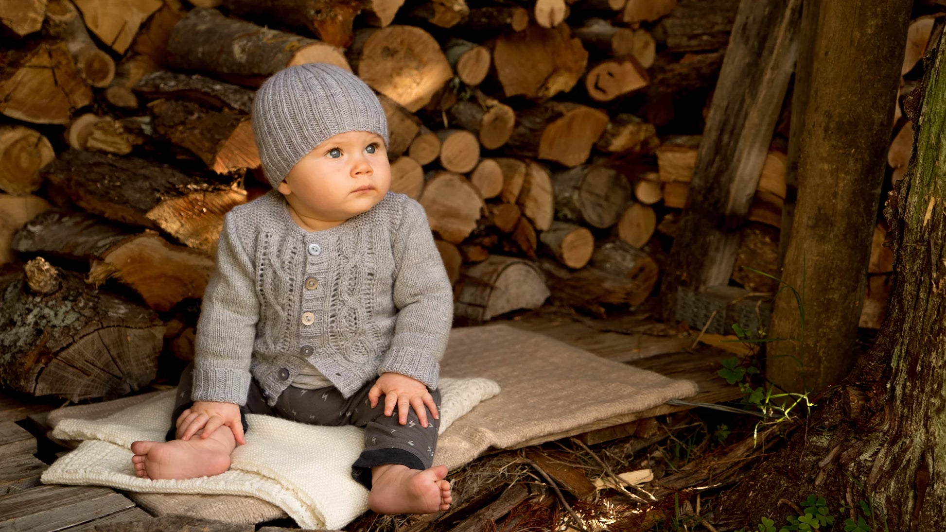 The Jasper Cardi from Lisa F Design has an interesting cable and lace front with a garter stitch yoke for a boy or a girl. The cardigan has a crew neck, set in sleeves, and ribbed bands, with a 2 x 2 ribbed beanie to match, which has two versions, knitted flat on straight needles or in the round on double pointed needles.