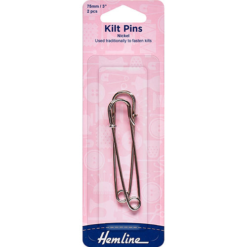 Traditional fastening for kilts and tartan skirts. Popular with crafters for making decorative brooches from beads and jewellery accessories. 2 pins, size 75mm (3″) in length