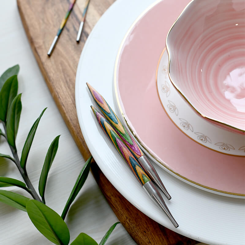 Symfonie interchangeable circular needles are available in 2 needle lengths with a variety of no-kink cable lengths for a wide range of knitting projects, from small to large. Flawlessly tapered and with perfect points, they are ideal for all yarns and every project. Lightweight, strong, and durable, a smooth join ensures easy stitch glide and no snagging. The resilient, flexible cables lay flat with no kink or twist, and are easy to store. Enjoy hours of knitting with no hand fatigue.
