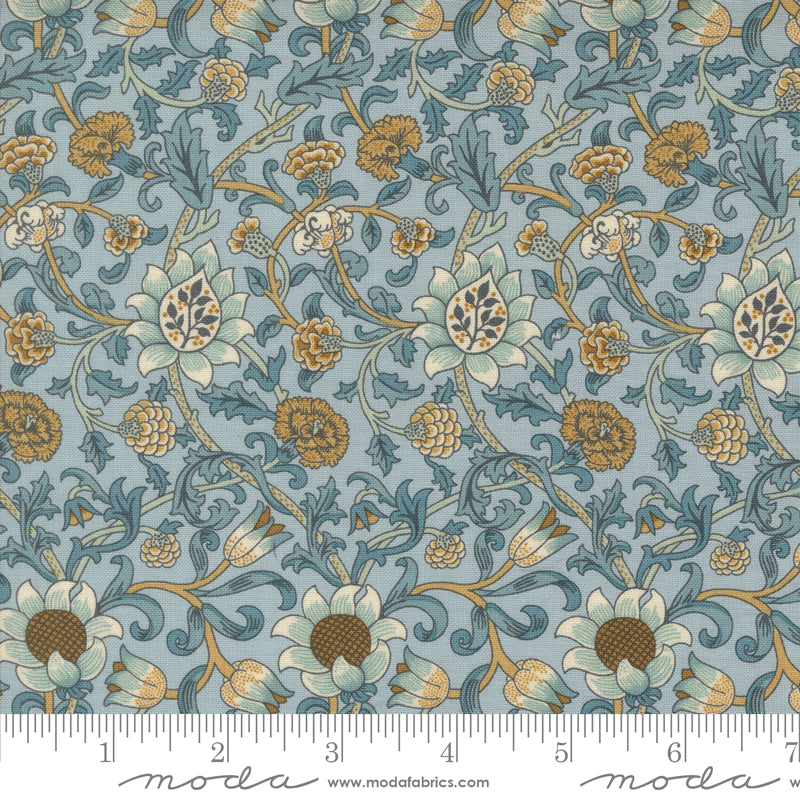 Morris Manor from Barbara Brackman is Moda’s latest update of William Morris’s classic design. The collection is named for the family’s summer home Kelmscott Manor, a riverside house they began renting annually in the 1870s. Morris thought Kelmscott Manor “heaven on earth,” a spot he captured in colors echoing the seasonal view.