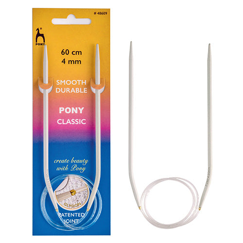 The Circular knitting Pin has two pointed shanks joined by a long flexible cord. The cord is strong and smooth and allows the weight of the work to rest on the lap rather than on the needles. There is less strain on the hands and wrists as the Circular pin cord accommodate a large number of the stitches. Circular knitting pins can be used for flat and knitting in rounds. The length of the flexible cord will determine the size of the garment. The transition point where the shank is connected to the flexible cord is smooth for snag free stitches and is firmly fixed to avoid the cord separating while knitting.