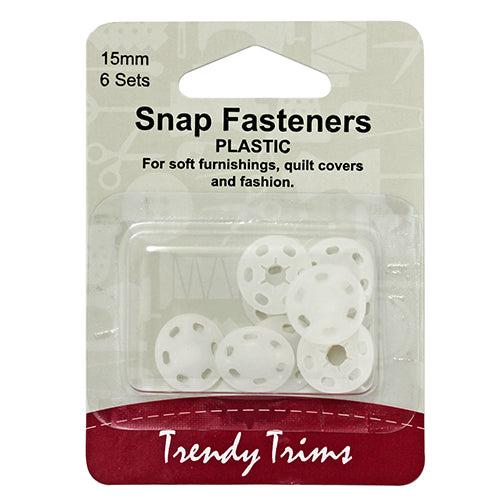 Plastic snap fasteners for soft furnishings, quilt covers and fashion.