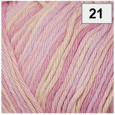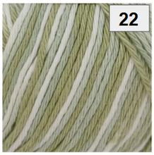 Countrywide Yarns soft cotton in 6 lovely print shades. 210m per 100g ball, Machine Wash long staple Egyptian cotton. Lovely quality, great value. Great for all those with allergies to wool, easy care with 6 fashion shades.