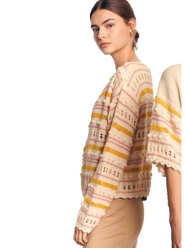 Recommended Wool: 250 (300) g of Lana Grossa Ecopuno (72% cotton, 17% Merino wool, 11% baby alpaca; 215 m/50 g) in Ecru (col 46) and 50 g each in Peach (col 7) and Light Yellow (col 52).